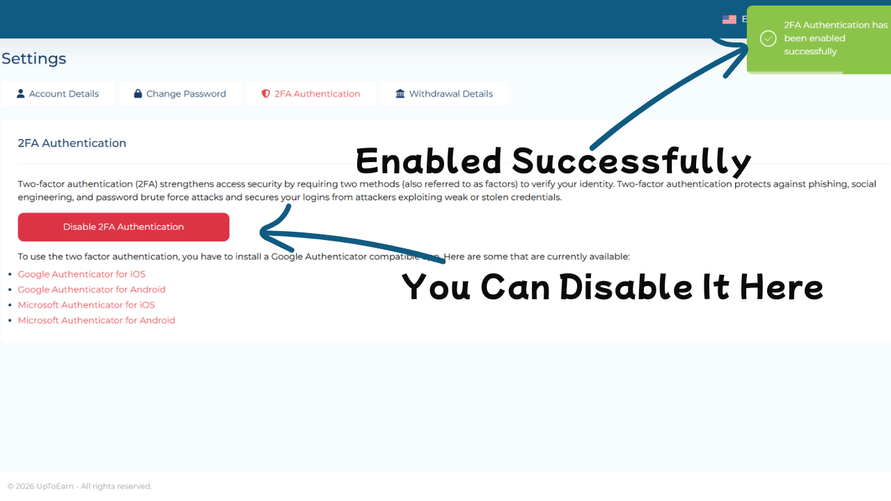 How to Enable Two-Factor Authentication on UptoEarn